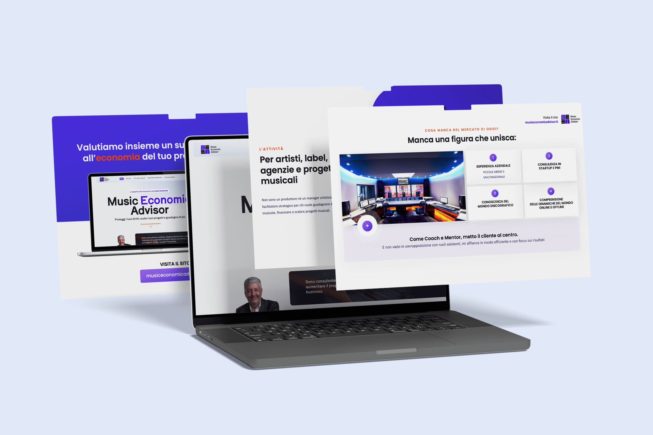 Forme morbide e dinamiche, dal design moderno e compatto, inquadrano la nuova figura: un Music Advisor, con focus sull'aspetto Economico. Un duplice obiettivo: proteggere diritti, economia e finanze per monetizzare dalla propria passione.